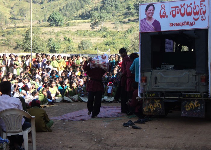 Through the innovative “JEEP JATHA” awareness campaign, a cultural troupe performs interactive street plays across tribal and rural areas.